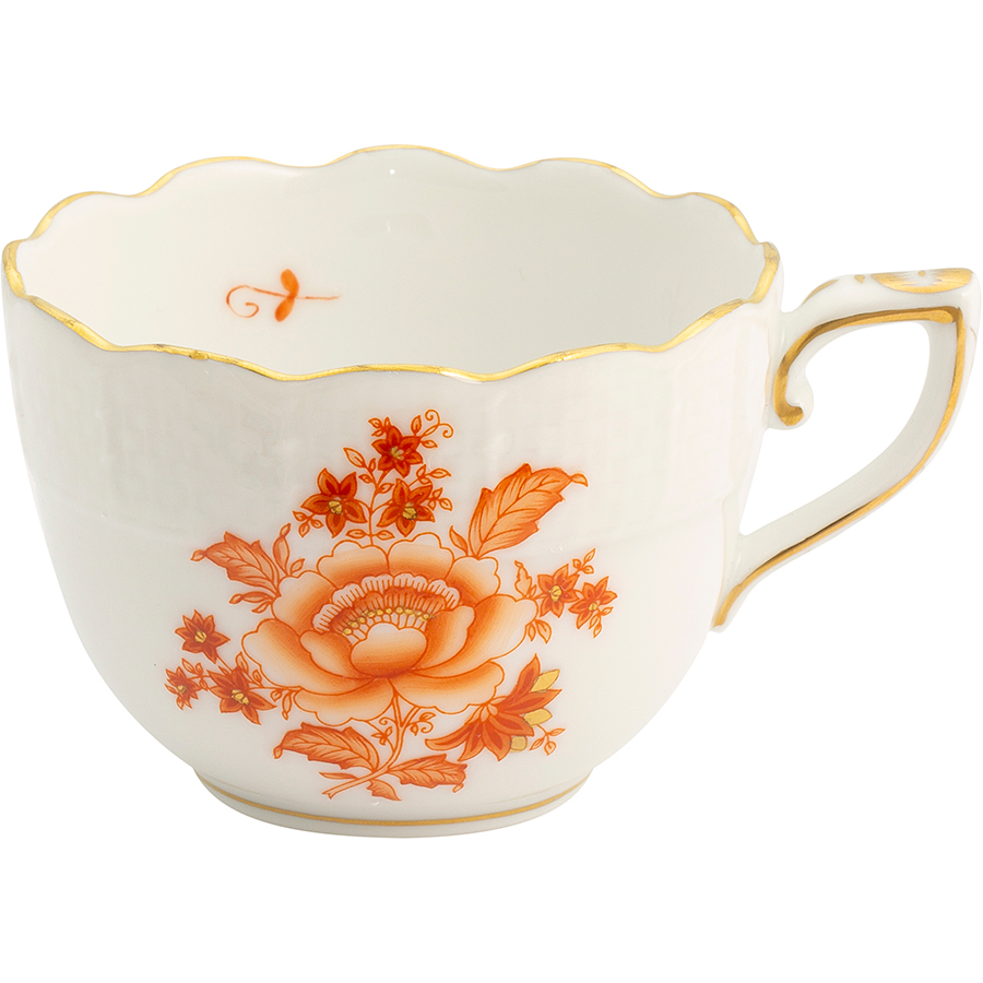 Herend Cicek Desenli Kahve Fincani Turuncu