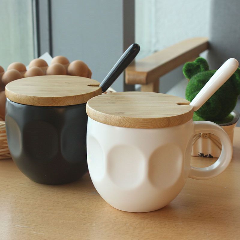 Satis 450 Ml Yaratici Kisa Seramik Procelain Severler Sut Kahve Kupa Ile Kasik Ahsap Kapak Paspaslar Kiti Ofis Siyah Cay Bardagi Arkadas Hediyeler Drinkware Satisnakliye Co