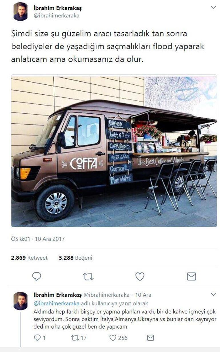 Bir tanesi sıfır araba alıp içinde gerekli modifikasyonu yaptıktan sonra seyyar kahve dükkanı olarak kullanıyordu.